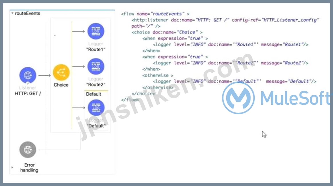 MuleSoft Doc Ref : https://docs.mulesoft.com/mule-runtime/4.3/choice-router-concept The Choice router dynamically routes messages through a flow according to a set of DataWeave expressions that evaluate message content. Each expression is associated with a different routing option. The effect is to add conditional processing to a flow, similar to an if/then/else code block in most programming languages.