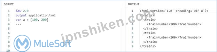 質問40 配列 a を XML 出力に変換する DataWeave 式はどれですか? (Exhi...