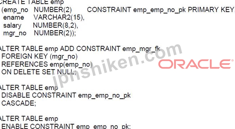 質問88 Oracleテーブルの制約について正しい4つのステートメントはどれ...