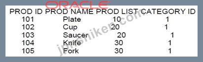PRODUCTSテーブルのデータを調べます。 これらのクエリを調べます。 1.製品名、製品リストを選択します FROM製品 WHERE prod 1ist NOT IN(10,20) AND category _id=1; 2. SELECT prod name, | prod _ list FROM products WHERE prod list < > ANY (10,20) AND category _id= 1; SELECT prod name, prod _ list FROM products WHERE prod_ list <> ALL (10, 20) AND category _ id= 1; どのクエリが同じ出力を生成しますか?
