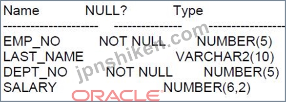 質問102 EMPテーブルの次の説明を調べます。 (Exhibit) 次のクエリを実行...