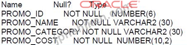 質問48 次のSQLステートメントを評価します SQL&gt; SELECT promo_id、p...