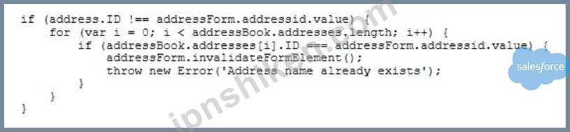 次のコードは、住所IDが顧客の名簿の別の住所ですでに使用されている場合、その住所IDを使用できないようにします。コードに問題があります。無効なアドレスIDのエラーメッセージは、フォームフィールドにユーザーに表示されることはありません。