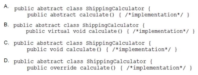 質問42 開発者は、インスタンス化できないShippingCalculatorクラスを作...
