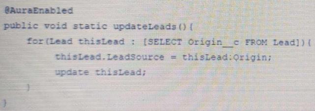 質問15 開発者は、Lightningコンポーネントから呼び出されるApexメソッ...