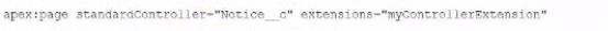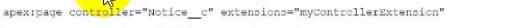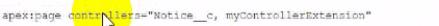 Visualforce ページの「 Notice」という名前のカスタムオブジェクトに対してコントローラと拡張機能はどのように指定されますか?