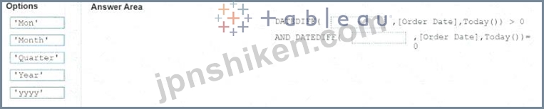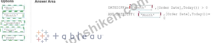 「当月を除外」の式はどのように入力すればよいですか? (適切なオプションを回答領域にドラッグし、正しい場所にドロップします。)
