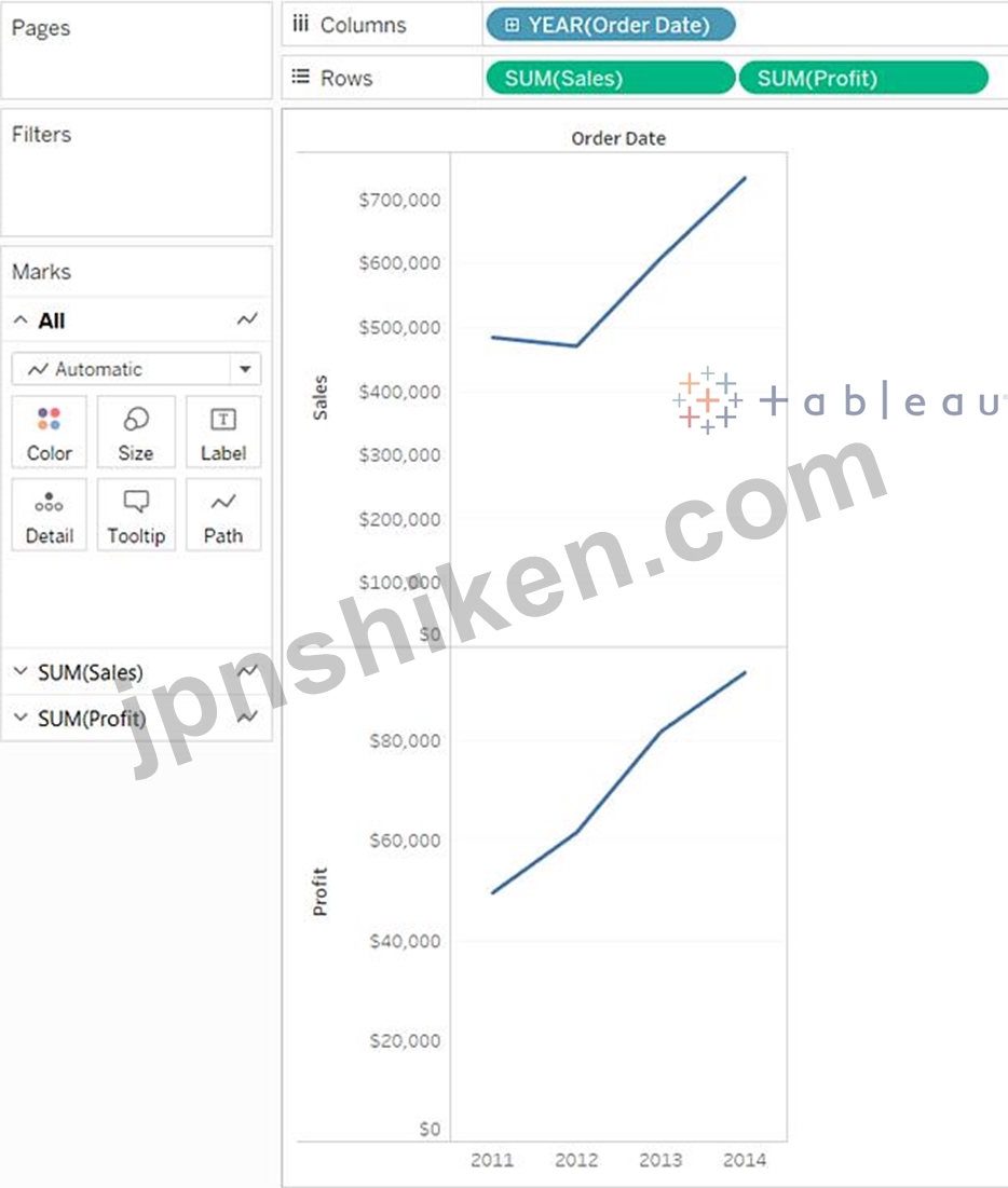 質問32 Tableau でビジュアライゼーション用に軸が作成されるのはいつで...